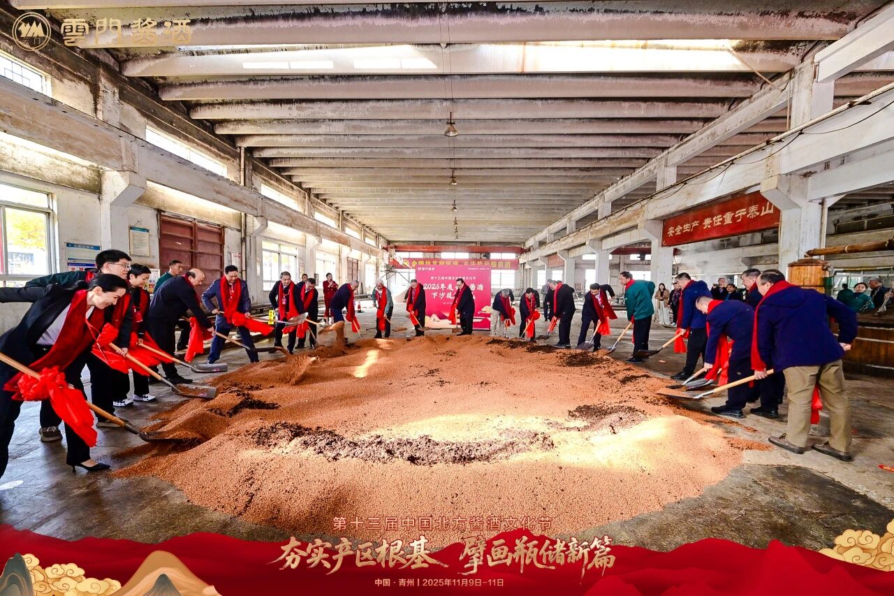 仪式现场,与会领导嘉宾持锨挥粮。一铲一投之间,承载的是跨越千年的酿造智慧,是云门人对“顺天应时 恪守古训”的生动践行。不仅传递着对天地自然的虔诚敬畏,更凝结着云门匠人对品质的坚守、对未来的承诺。