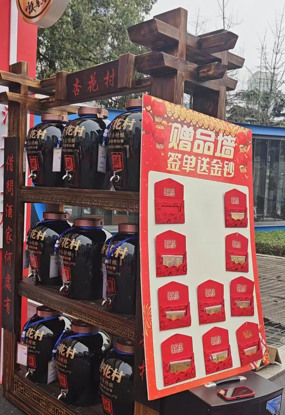 头部酒企虽面向C端聚焦主会场,但中小酒企依旧在酒店展中表现热络。古井贡酒依旧坚守大成宾馆的“春糖名酒地标”,除高度年份原浆展区之外,还专门设立了26度年份原浆“轻度”系列展区。在望江宾馆内,到处悬挂着习酒的宣传标语和易拉宝,五福楼展厅原有茅台的展位已被习酒产品所替代。而在中小酒企聚集的锦江宾馆,山西杏花村酒业集团推出了“买酒送金钞”活动,据工作人员介绍,现场订购200件酒就赠送一张金钞。此外,另有酒企打出“2万做代理”的招牌,该酒企工作人员介绍,交2万元即可发24万元的货成为经销商,同时,复购还有厂家补贴。